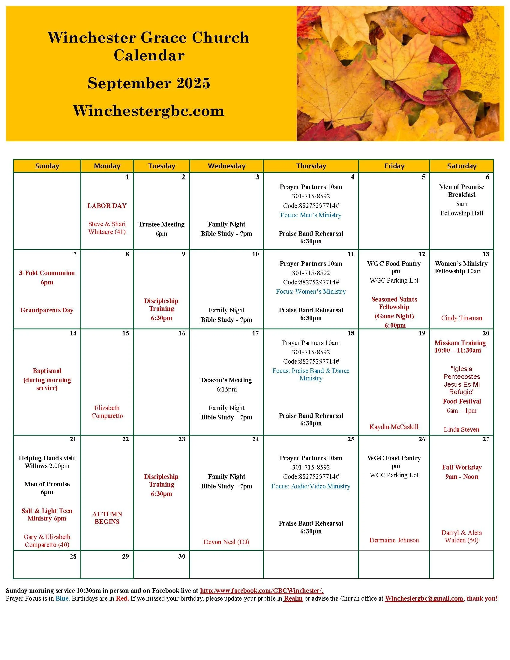 In February 2012, Pastor Kevin Mincey, the senior pastor and founder of the Disciples of Christ Outreach GBC and the senior pastor of Apple Valley GBC, was called by the Winchester GBC congregation to serve as Pastor. In April 2012, Pastor Kevin and the Apple Valley GBC merged with Winchester GBC.